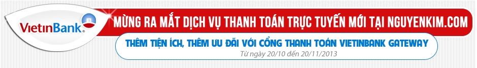 II. Hình thức khuyến mại: Áp dụng cho khách đặt hàng tại website www.nguyenkim.com và thanh toán trực tuyến qua cổng Vietinbank Gateway phát hành tại Việt Nam