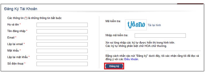- Chọn nút Đăng ký. Điền đầy đủ thông tin vào phần Đăng ký tài khoản >> Chọn Đăng ký để hoàn thành thao tác. Mở email để kích hoạt tài khoản.